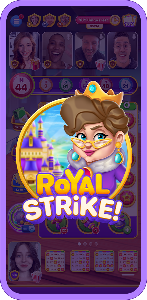 Royal Bingo was a bold attempt to innovate within the mobile bingo genre by combining real-time multiplayer gameplay, video chat, and interactive power-ups in a highly social environment. The game successfully launched on both Android and iOS, reaching over 120,000 downloads, and gained traction in key regions like Italy shortly after release. Our team delivered a complete product with a polished core loop, social mechanics, and monetization systems - all under tight timelines and with a small, focused design team.